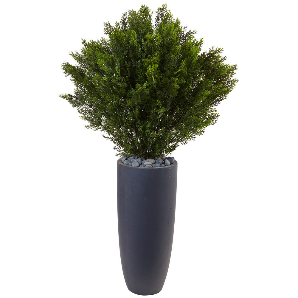 Nearly Natural 4’ Cedar in Cylinder Planter (Indoor/Outdoor), Green