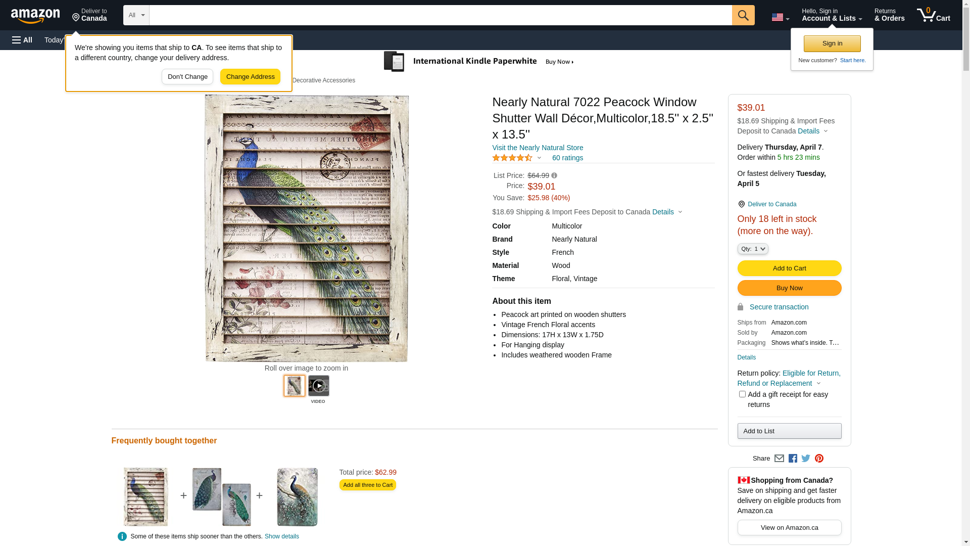 Nearly Natural 7022 Peacock Window Shutter Wall Decor