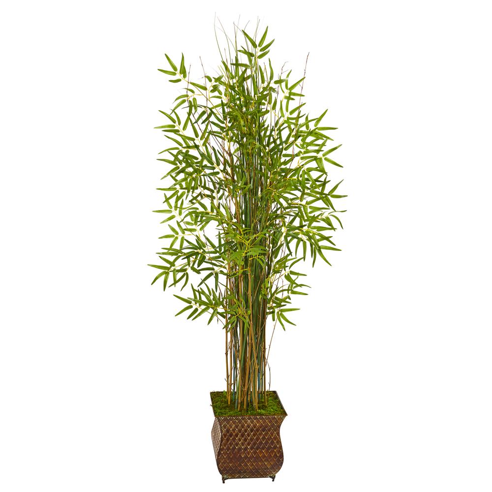 - Vivid foliage pours forth from this artificial bamboo plant Boasting lifelike qualities throughout its carefully designed leaves in bright, vivid hues. Stands 64in. From a metal planter.