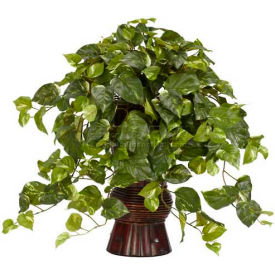 Nearly Natural 6646 Pothos with Bamboo Vase Decorative Silk Plant, Green