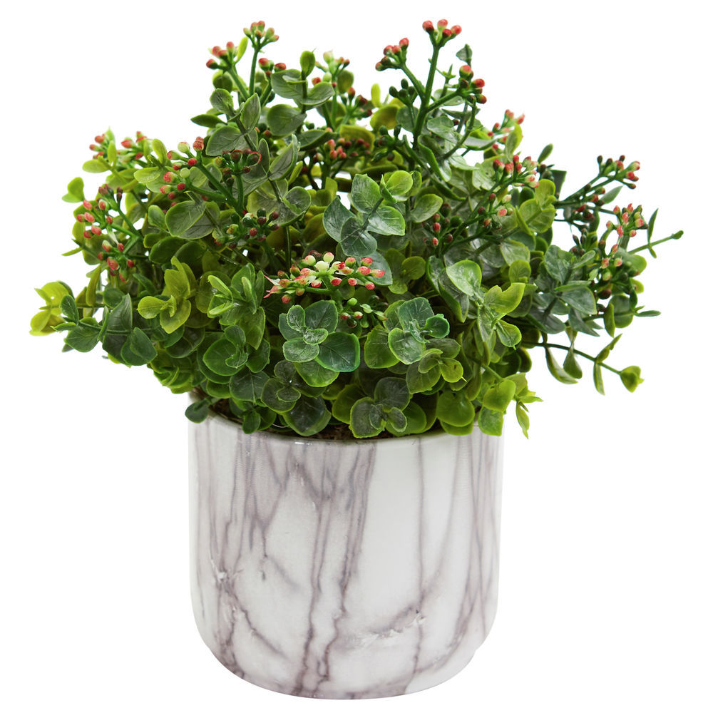 Nearly Natural 9in Eucalyptus Artificial Plant in Marble Finished Vase