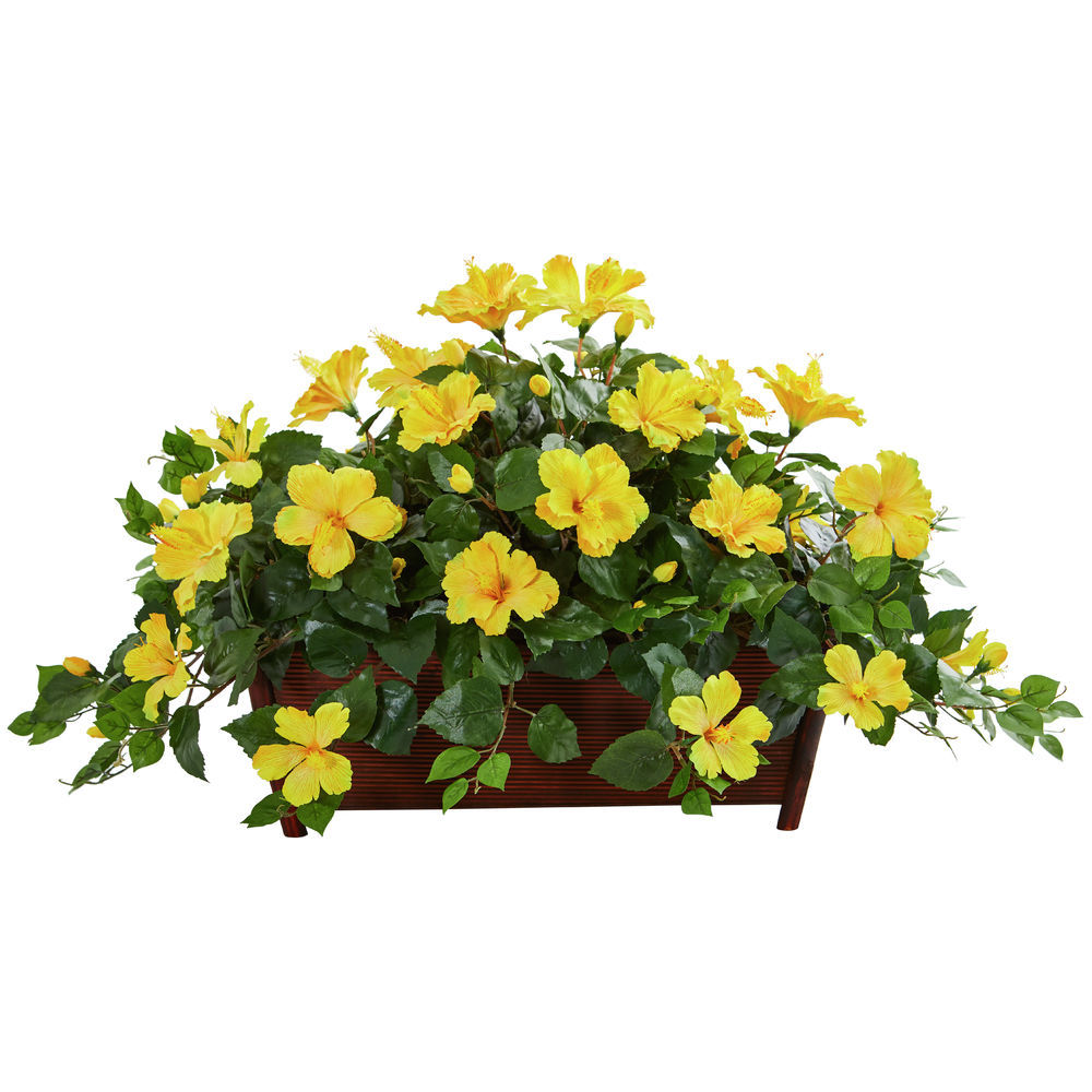 Nearly Natural Hibiscus Artificial Decorative Planter Silk Plants Yellow