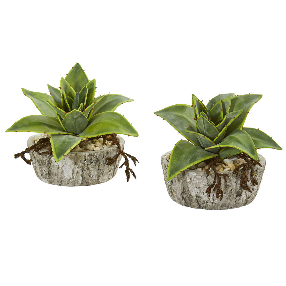 Nearly Natural 6in Dusty Succulent Artificial Plant in Vase (Set of 2)