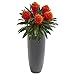 Nearly Natural 31” Bromeliad Artificial Gray Planter Silk Plants, Red/Green