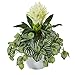 Nearly Natural 18” Bromeliad and Peperomia Artificial White Bowl Silk Plants