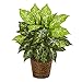 Nearly Natural 19in. Dieffenbachia Artificial Basket Silk Plants, Green