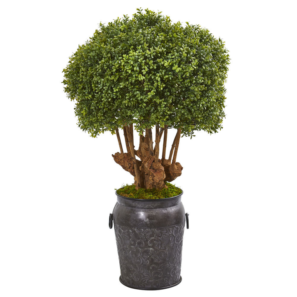 Nearly Natural 44in Boxwood Topiary Tree in Metal Planter (Indoor/Outdoor)