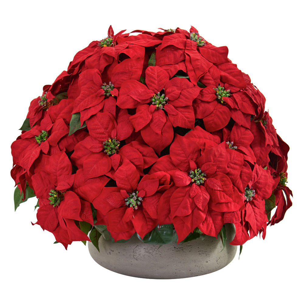 Nearly Natural 24in Large Poinsettia Artificial Plant in Stone Planter
