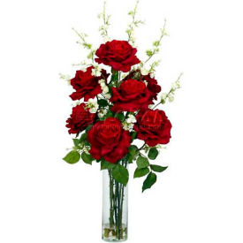 Nearly Natural 1203 Roses with Cherry Blossoms Silk Flower Arrangement, Red