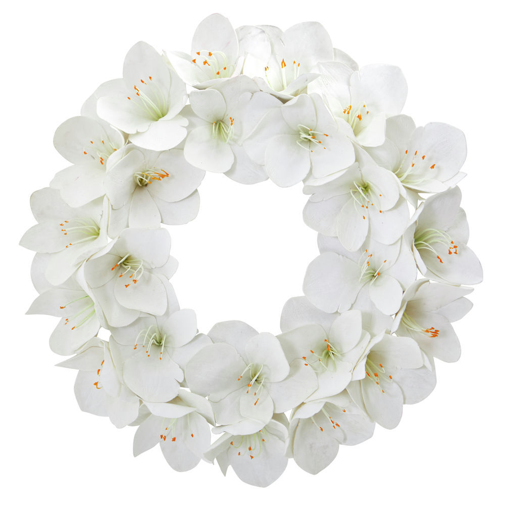 Nearly Natural 24 in. Amaryllis Artificial Wreaths White