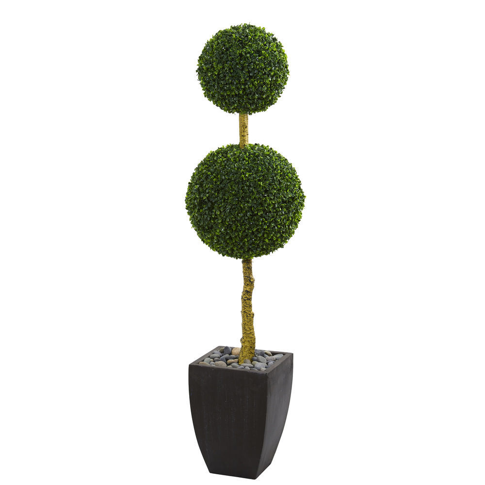Nearly Natural 5774 Double Ball Boxwood Topiary in Black Wash Planter, 5'