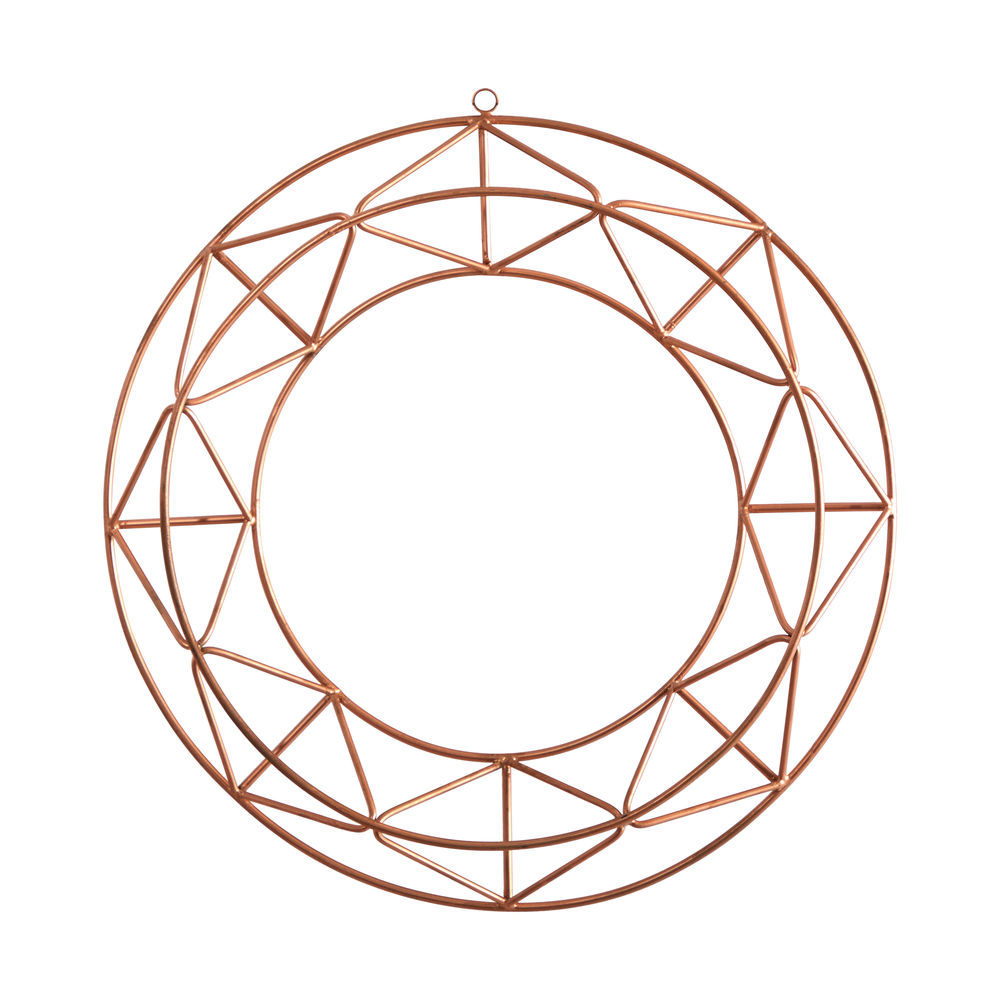 - Bring a unique focal point to your living areas with this Burnished Copper Wall Décor. We like to call this a modern wreath as it has the same look but with a brass finish. Update a bare wall that needs a stylish accent that is both artistic and geometric. With a diameter of 16in., hang in any Mid-Century Modern, Contemporary, or Modern decor scheme. Designer Tip: Pair with accents of different finishes such as bronze to create drama and textures.
