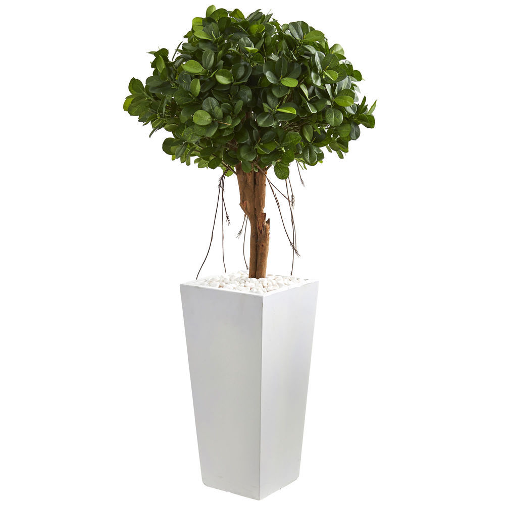 Nearly Natural 45in Ficus Artificial Tree in White Tower Planter