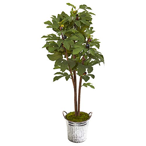 - Spruce up tight spaces with this artificial fig tree flaunting a canopy of carefully designed foliage in bright Green hues. Reaches 4’ high from a vintage metal planter.