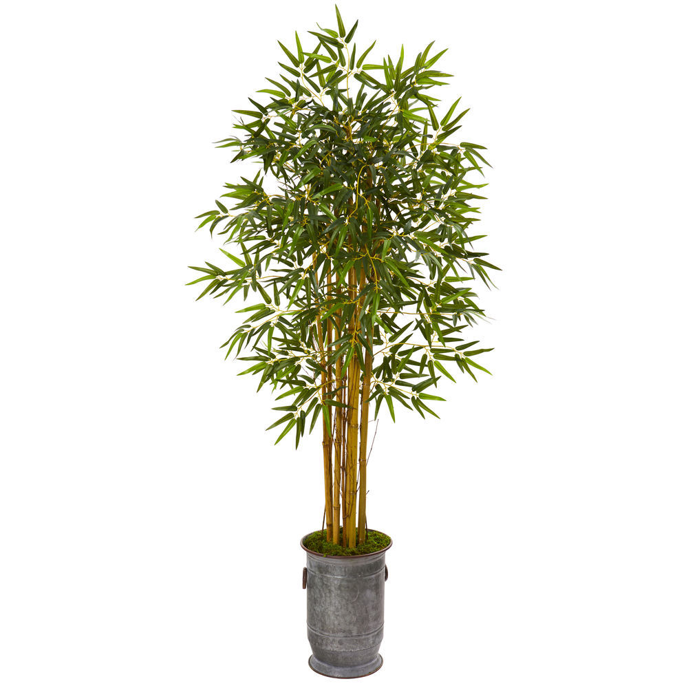 - Vivid foliage pours forth from this artificial bamboo tree Boasting lifelike foliage carefully designed in bright, vivid hues. Stands 68in. Tall from a metal planter.