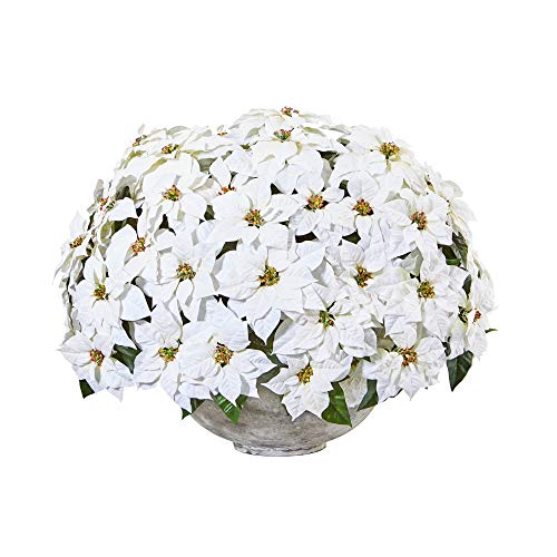 - Go all out This holiday with this artificial poinsettia arrangement consisting of silk blooms in a palette of pure White and contrasted with dark leaves peeping out. This giant holiday Floral stands 29in. High and 34in. Wide from a larger cement bowl.