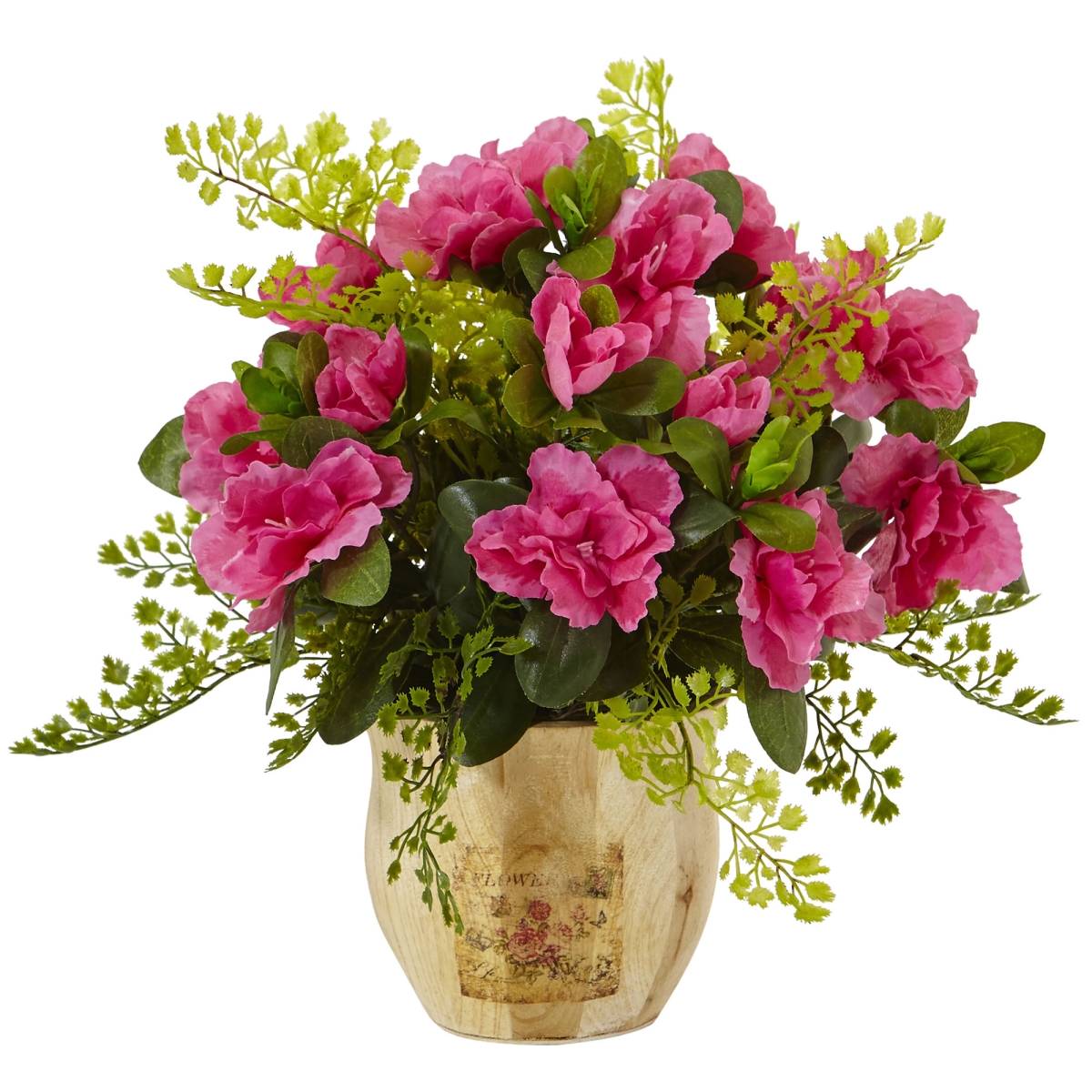 Nearly Natural 12.5in Azalea and Maiden Hair with Planter