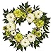 - HOME DECOR ACCENT: Blooming Peonies intertwine with delicate Mums in shades of white and green. Welcome the season with this timeless, artificial floral wreath. Contrast the wreath against a glossy, black door for an entryway statement, or place candle-side atop the fireplace mantel for a country farmhouse look. Peony measures 24" in diameter.