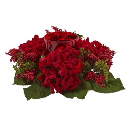Nearly Natural Hydrangea & Berry Candelabrum Decor, Red
