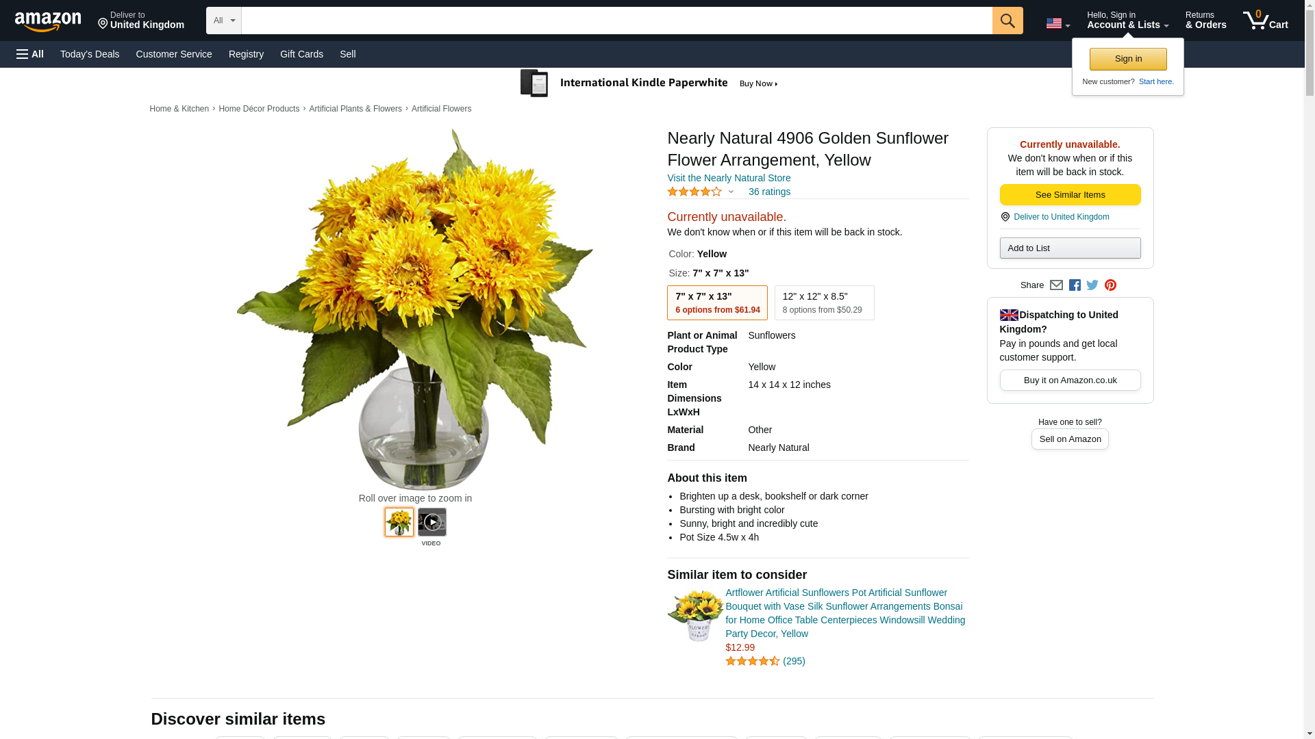 Nearly Natural 4906 Golden Sunflower Flower Arrangement, Yellow