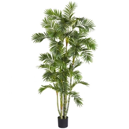 Standing tall at 72 in. high (6 ft.) this realistic looking Areca Palm Tree could hide among its tropic siblings with nobody being the wiser. Several intricately designed segmented trunks reach up high into the sky to hold out 33 lush leaves flowing out in different directions. The long foliage creates interesting patterns sure to draw anyone?s attention. Comes with pot and faux soil to complete the look.