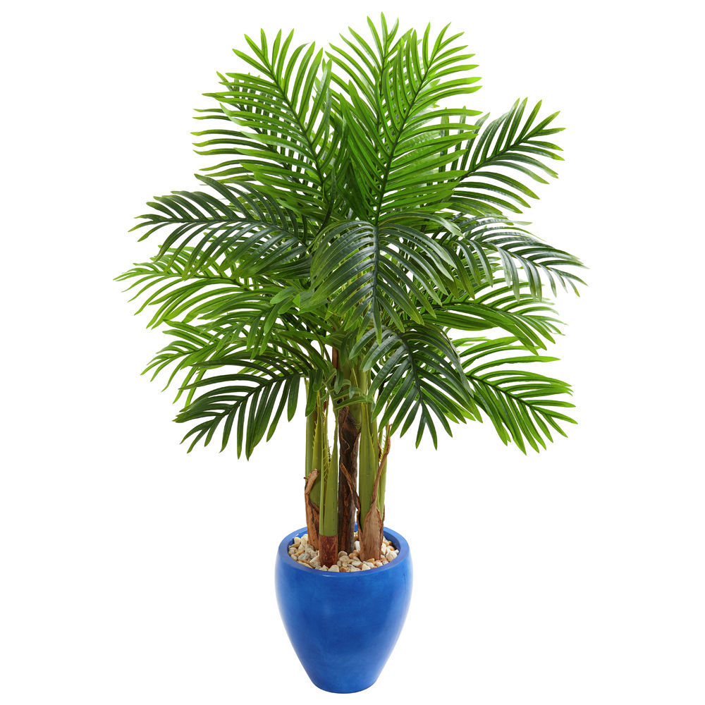 Nearly Natural 4.5ft Palm Artificial Tree in Blue Planter