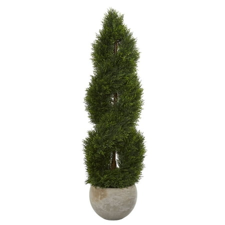 Nearly Natural Double Pond Cypress Spiral in Sand Colored Planter, 4', Multicolored