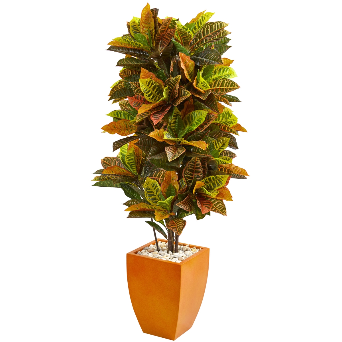 Nearly Natural 5.5ft Croton Artificial Plant in Orange Planter (Real Touch)