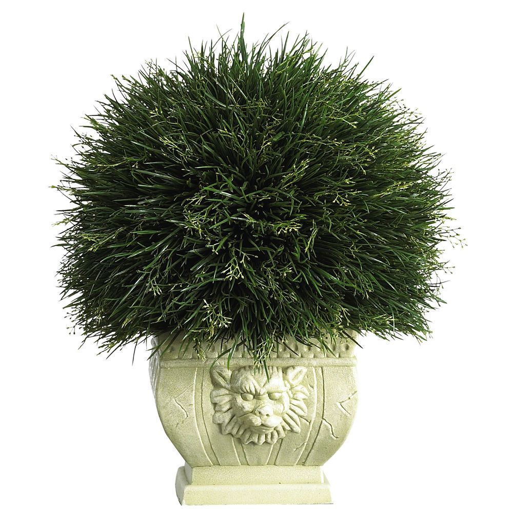 Nearly Natural 6539 Potted Grass with White Vase, Green