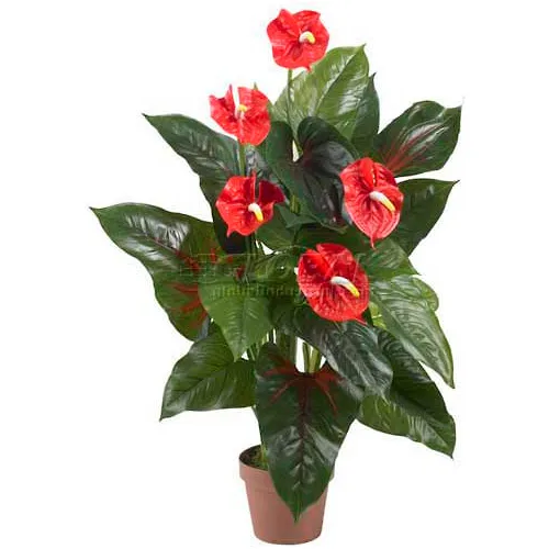 The Nearly Natural Real Touch 3 ft. Anthurium Silk Plant is designed to beautifully accent many different home and office decor styles. The plant stands 3 ft. tall and features red blooms and green leaves that are crafted with the finest materials to help ensure an authentic, organic appearance. It comes with a plastic potting container.