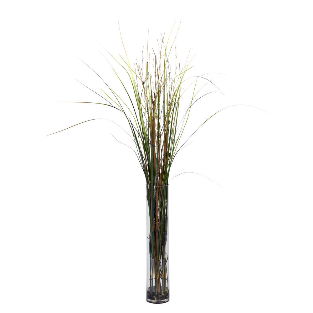 Nearly Natural 6699 Grass and Bamboo with Cylinder Decorative Silk Plant, Green