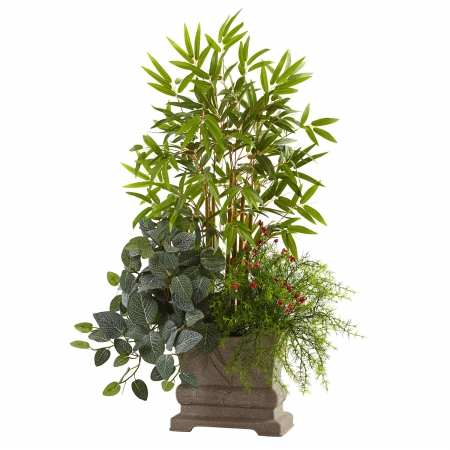 Nearly Natural 38in Mixed Mini Bamboo, Fittonia & Springeri w/Planter