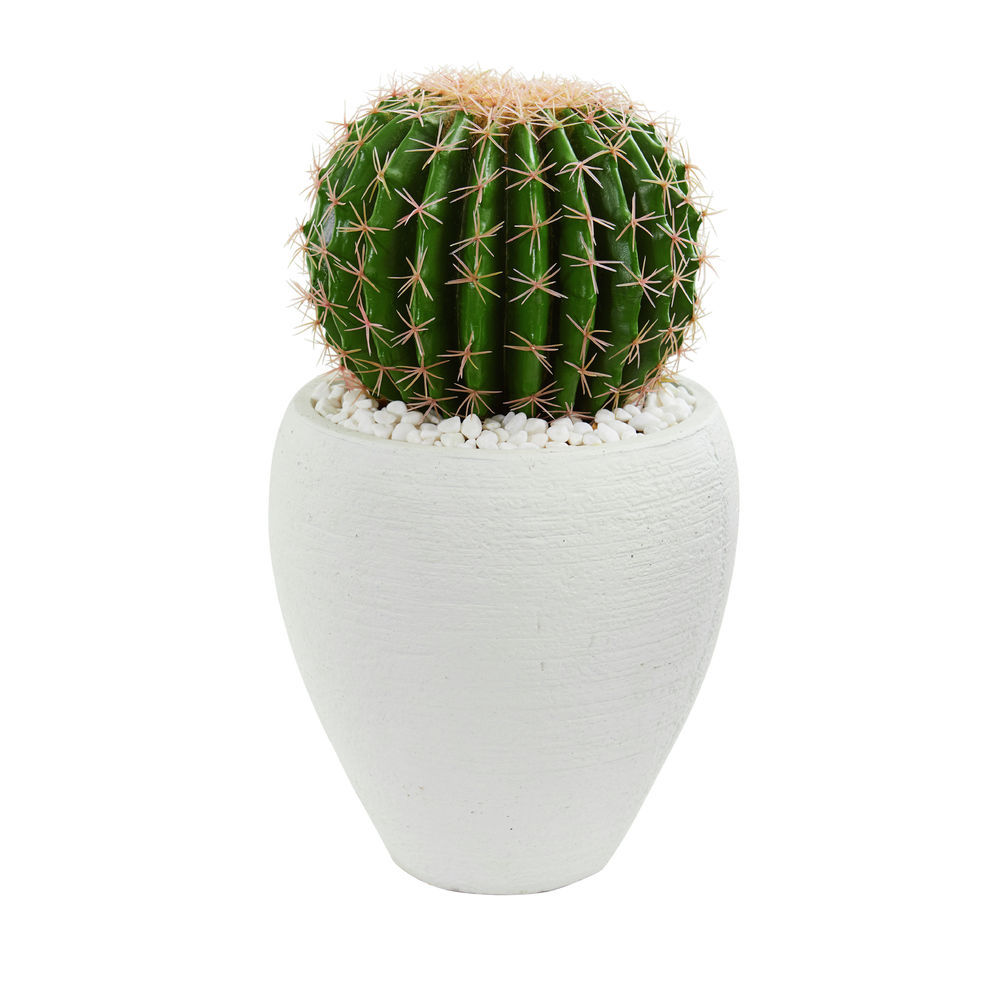 Nearly Natural Cactus Artificial White Planter Silk Plants, Green