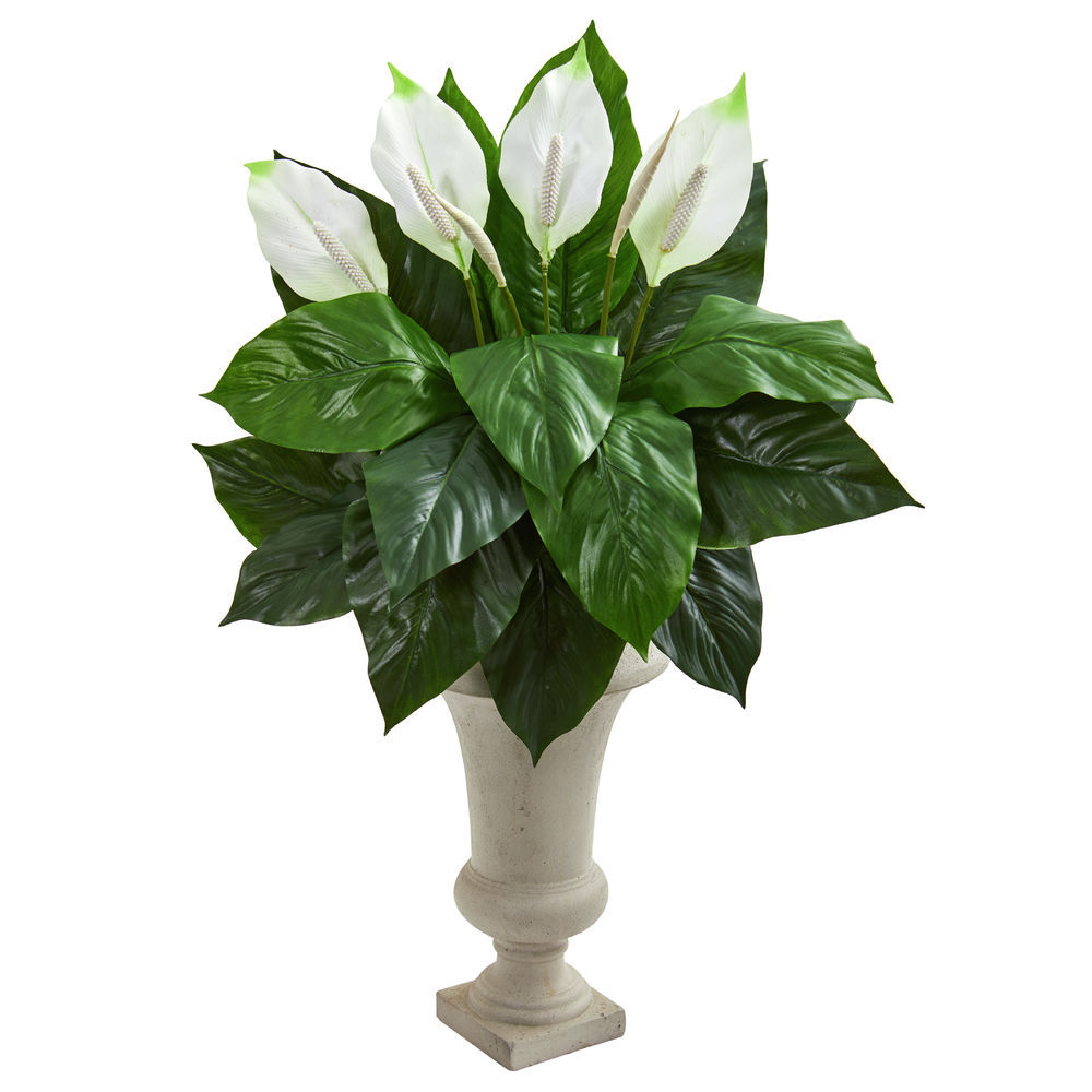 Nearly Natural Spathiphyllum Artificial Sand Colored Urn Silk Plants Green