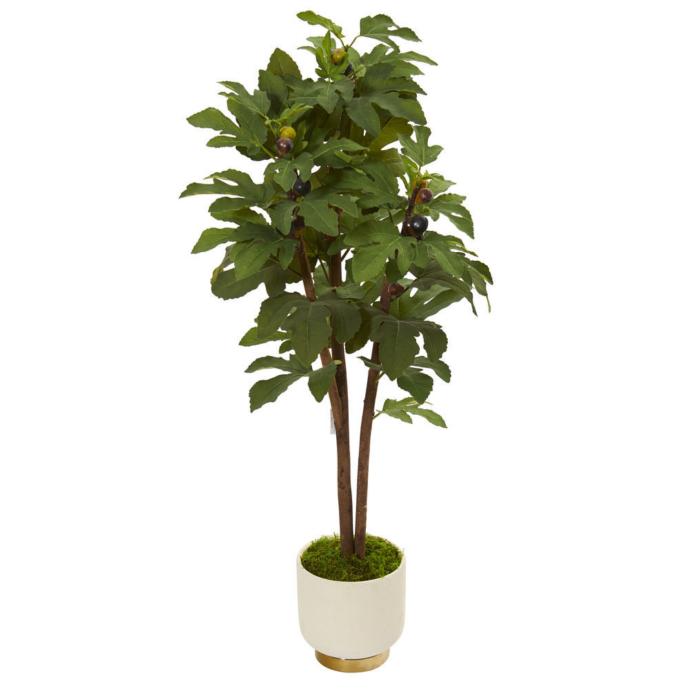 - Highlight Bare spaces with this artificial fig tree designed with lifelike leaves in bright Green hues, stemming from textured Trunks. Stands 47in. High from a white bowl.