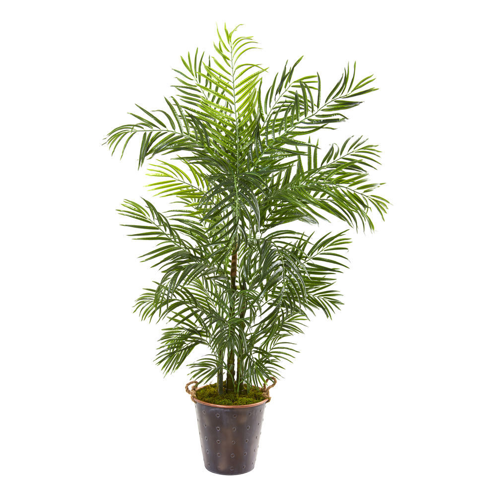 Nearly Natural 69in. Areca Palm Artificial Metal Pail UV Resistant (Indoor/Outdoor) Silk Trees, Green