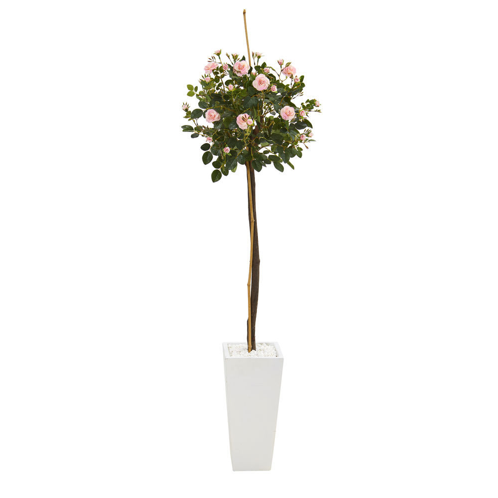 Nearly Natural 5 Ft. Rose Topiary Artificial Tree in White Planter
