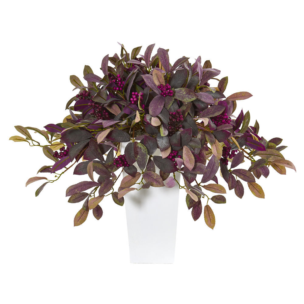 Nearly Natural 23in. Fall Laurel Leaf with Berries Artificial White Planter Silk Plants, Green