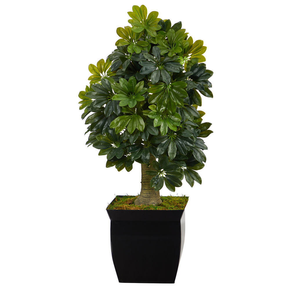 Nearly Natural 39 in. Schefflera Artificial Tree in Black Metal Planter Real Touch