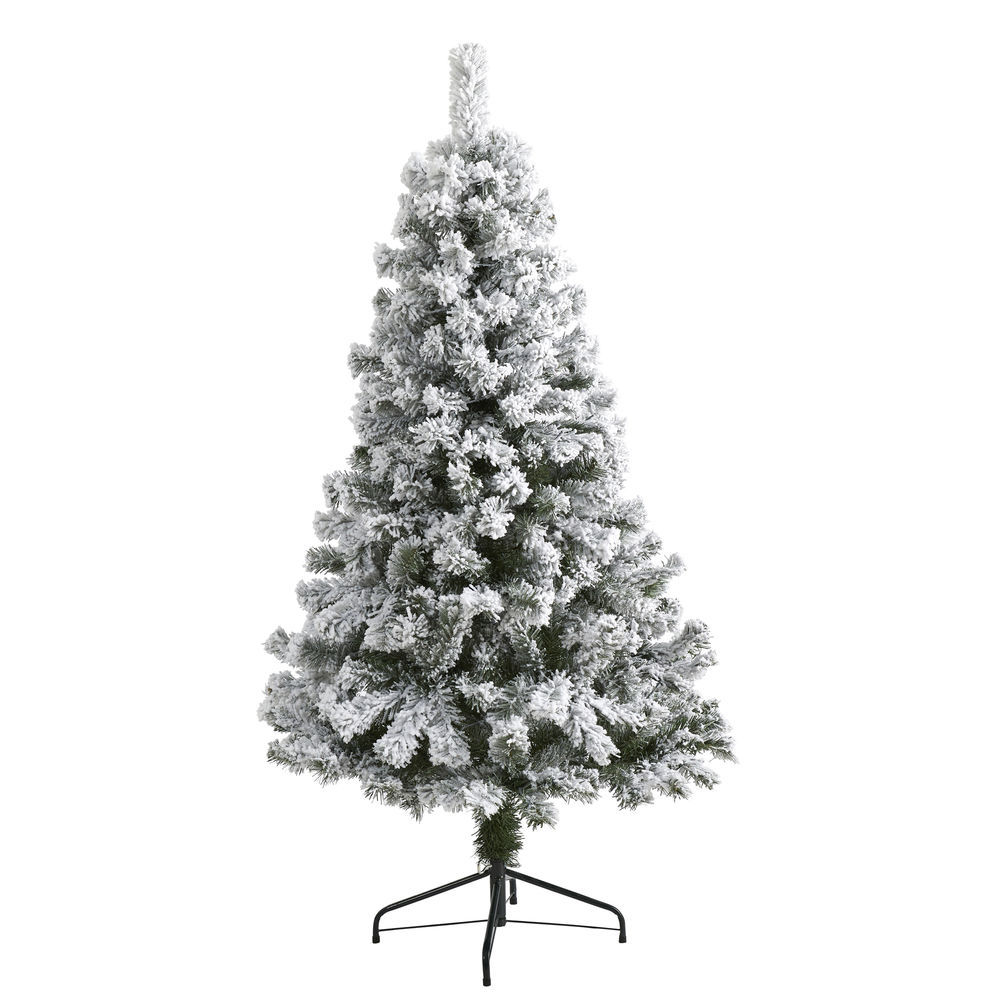 - SEASONAL DECOR ACCENT: Evoke a winter wonderland this holiday season with the help of this Flocked West Virginia Fir Artificial Christmas Tree. Entirely maintenance-free, this winter-inspired Christmas tree boasts soft looking foliage with 320 easy-to-bend branches for showcasing your own personalized ornaments and holiday accents - all lightly frosted with faux snow, creating a picture-perfect Christmas. Carefully stabilized on an accompanying stand, this festive 5’ tall frosted artificial Christmas tree will undoubtedly transform any home or office into a joyous holiday setting for years to come.