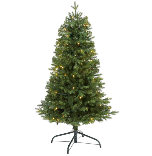 Nearly Natural 4 Ft. Vermont Fir Artificial Christmas Tree with 100 Clear LED Lights