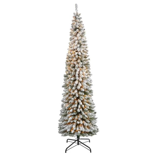 Nearly Natural T1908 8 ft. Flocked Pencil Artificial Christmas Tree with 500 Clear Lights & 646 Bendable Branches
