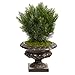 - Safe for outdoor areas ; Realistic looking faux cedar tree ; Zero maintenance ; Housed in an iron colored urn with faux moss ; Complements most decor schemes ; Artificial trees are manufactured using synthetic materials and are well designed and constructed to be life-like in appearance. No maintenance needed for this artificial tree; wipe clean with a soft dry cloth ; Item will need to be re-shaped when removed from the box; this artificial tree can easily bend for reshaping purposes - please separate and fluff the branches and leaves to achieve the desired fullness. Measurements are calculated from the furthest outstretched dimension