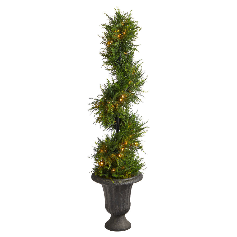 Nearly Natural 4.5 Ft. Spiral Cypress Tree in Charcoal Urn with 80 Clear LED UV Resistant