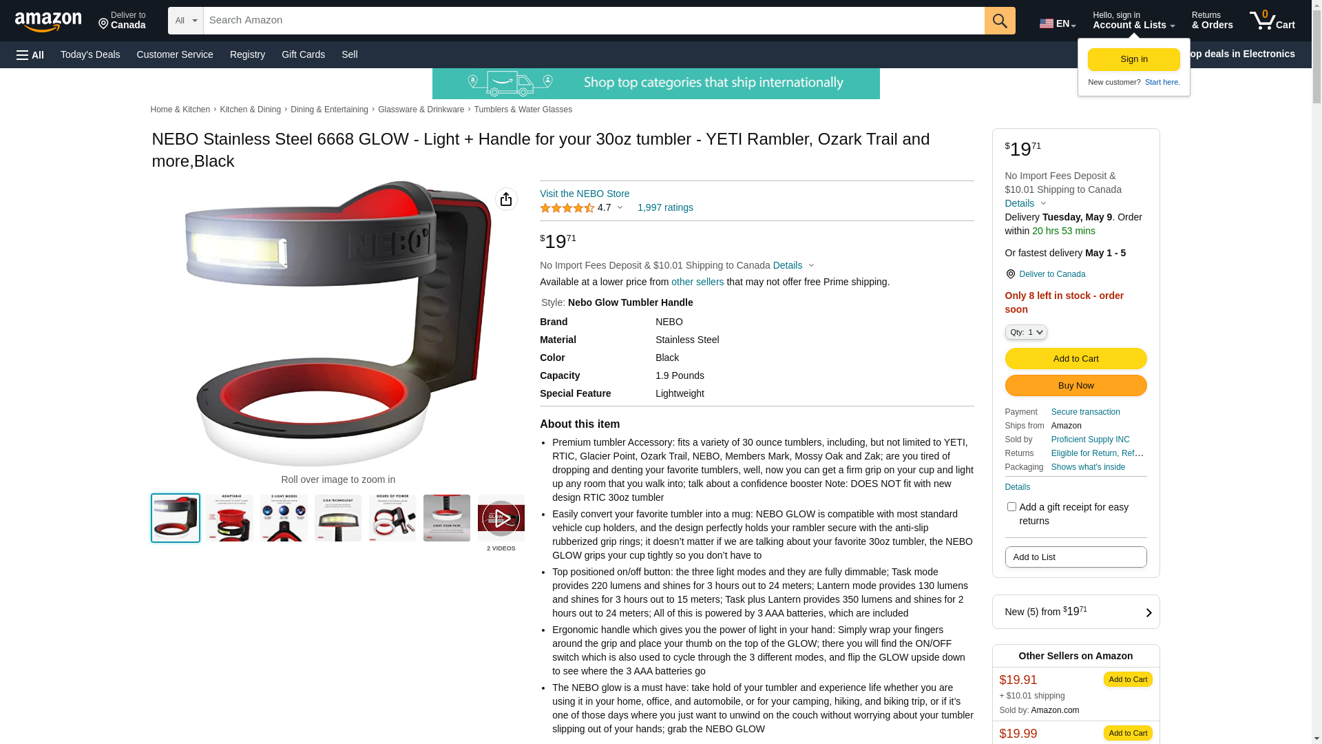 NEBO Stainless Steel 6668 GLOW - Light + Handle for your 30oz tumbler - YETI Rambler, Ozark Trail and more,Black, 1 Count (Pack of 1)