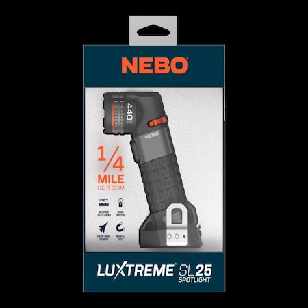 - LUXTREME SL25 1/4 MILE LED SPOTLIGHT: NEBO offers advanced LED and optics technology in the SL25. This light throws 400 lumens of bright light up to ¼ mile away