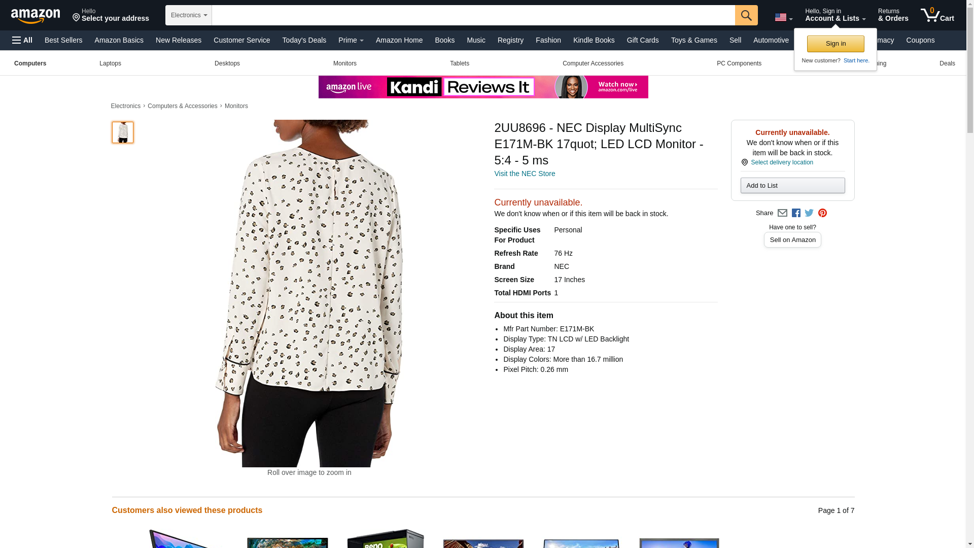 NEC, MULTISYNC E171M-BK, 17, LED BACKLIT LCD MONITOR, 1280 X 1024, HEIGHT-ADJUSTABLE STAND, DIGITAL / ANALOG INPUTS, NO TOUCH AUTO ADJUST, NAVISET SOFTWARE, INTEGRATED SPEAKERS, BLACK CABINET, 3 YEAR