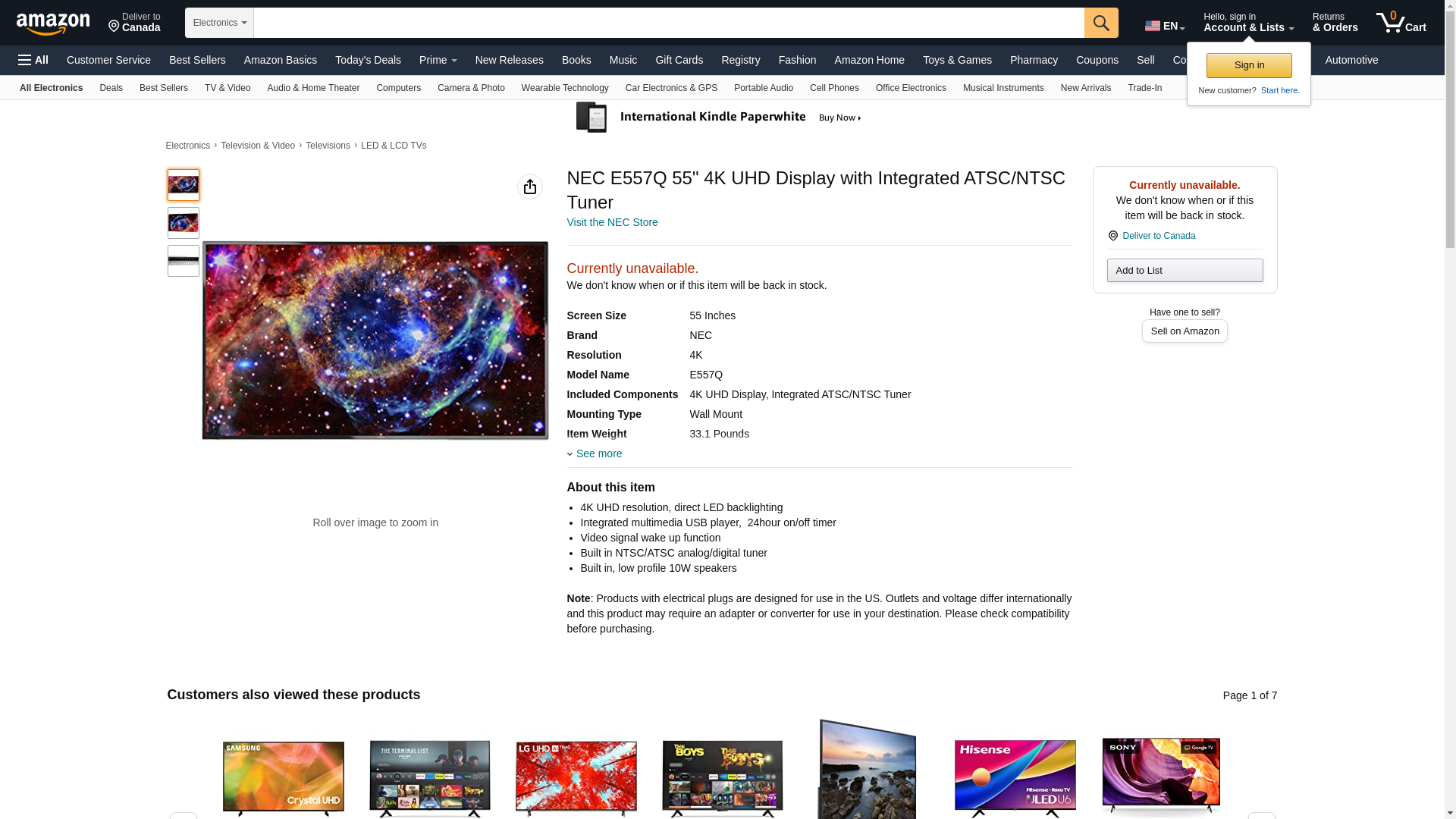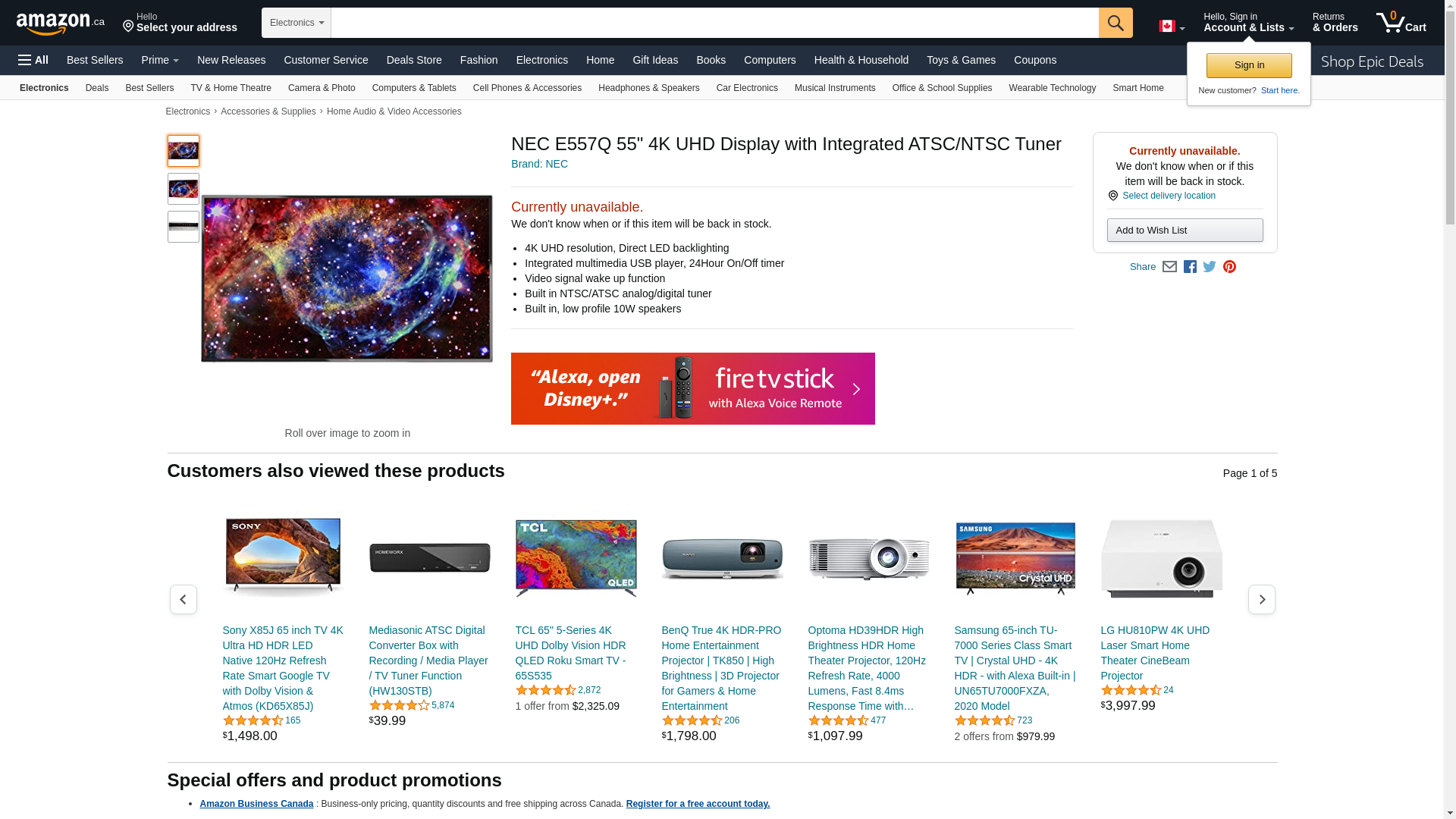 NEC E557Q 55" 4K UHD Display with Integrated ATSC/NTSC Tuner