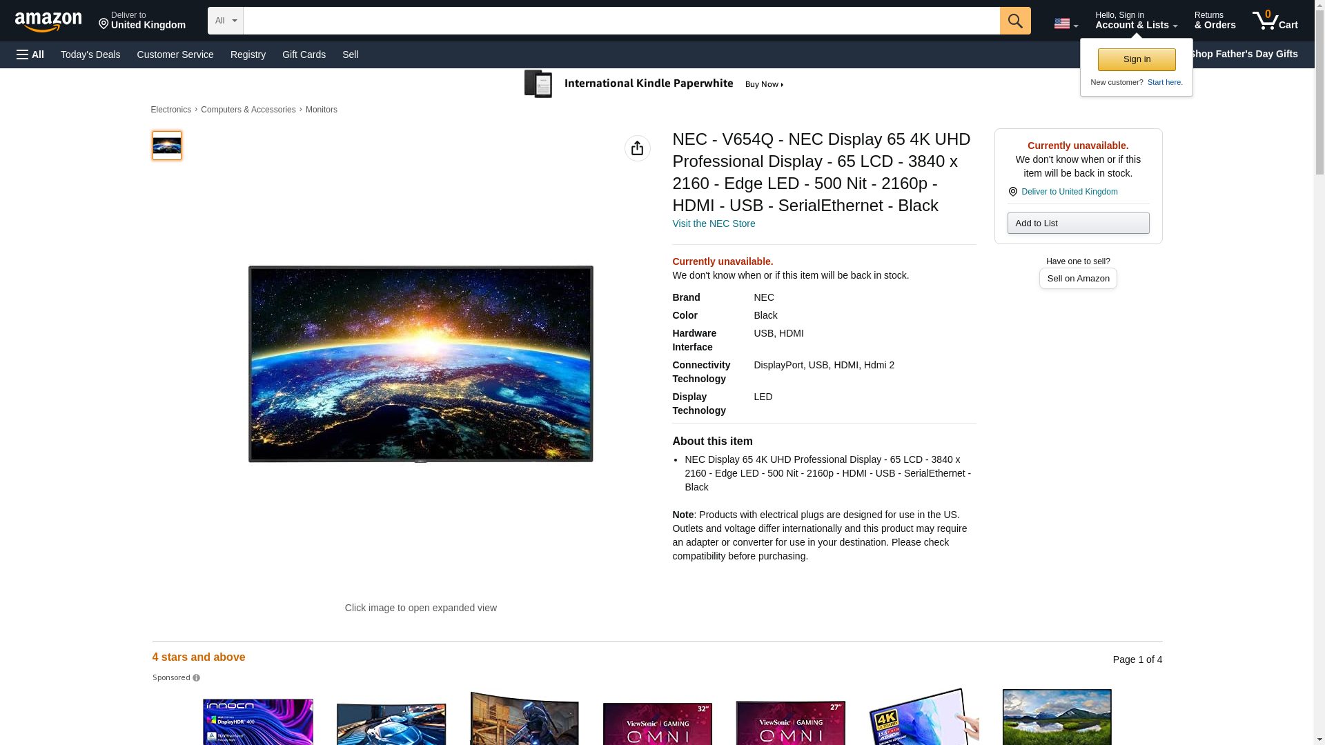NEC - V654Q - NEC Display 65 4K UHD Professional Display - 65 LCD - 3840 x 2160 - Edge LED - 500 Nit - 2160p - HDMI - USB - SerialEthernet - Black
