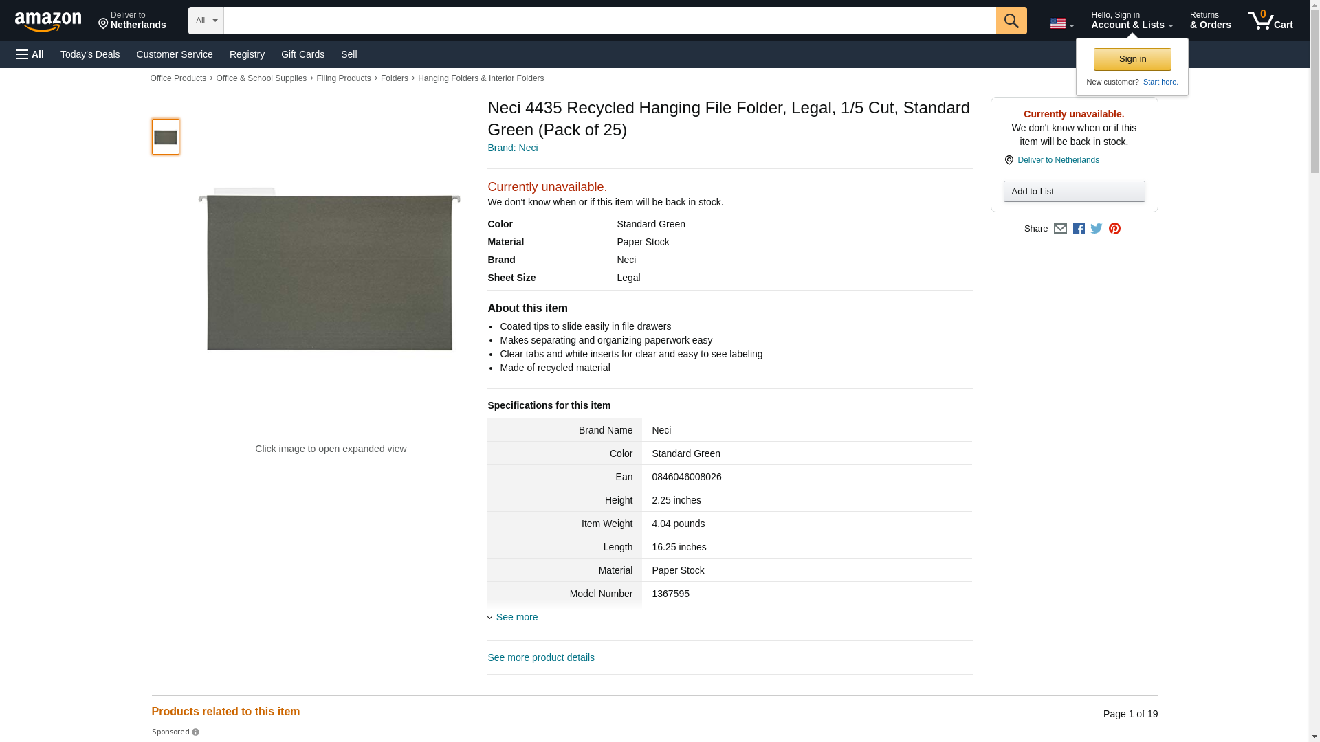 Neci Cut Durable Recycled Hanging File Folder, Standard Green, Pack 25